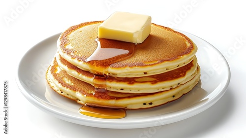 Stack of Buttered Pancakes with Syrup on White Plate