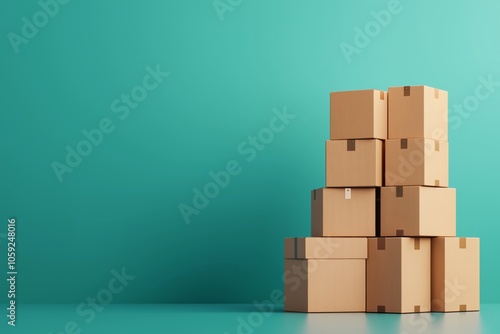 Stack of cardboard boxes against a teal wall, symbolizing storage, moving, or delivery. Perfect for shipping, logistics, or packaging themes.