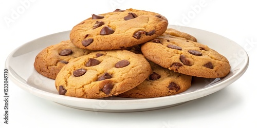 Stack of Chocolate Chip Cookies on White Plate, dessert , snack