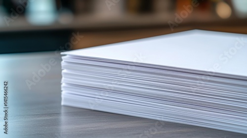 Stack of Clean White Paper Sheets on a Wooden Table in Bright Workspace