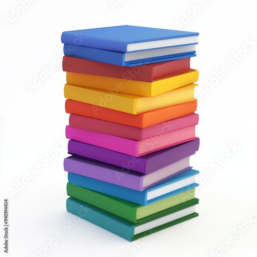 Stack of colorful books arranged in a vertical pile against a white background Generative AI