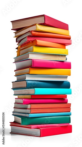 Stack of Colorful Books, Education Still Life on White Background, Learning and Knowledge
