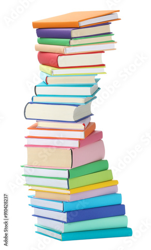 Stack of colorful books isolated on white