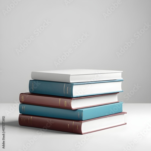 Stack of Colorful Hardcover Books on Minimalist White Background