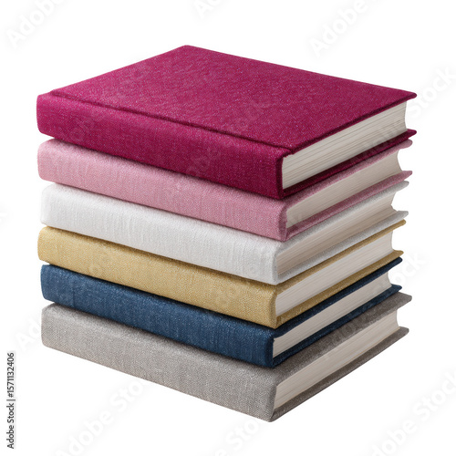 Stack of colorful, textured books on a reflective surface, showcasing various hues. Perfect for representing knowledge, reading, and educational themes.
