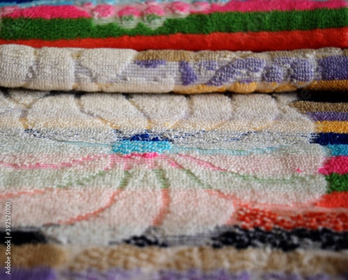 stack of colorful towels in detail view