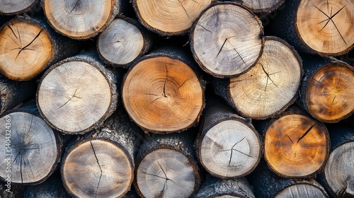 Stack of cut logs showing wood grain and tree rings in close-up.