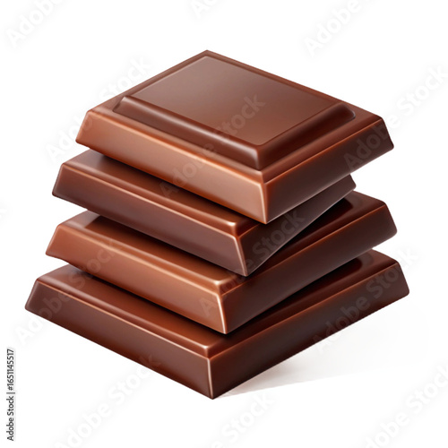 Stack of dark chocolate bars, a sweet and delicious dessert, isolated on transparent background