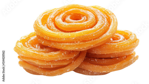 Stack of delicious Imarti Indian sweet dessert with sugar powder on a transparent background, a popular festive treat Concept of celebration, culture, and indulgence