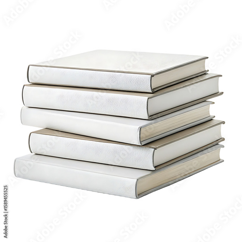 Stack of five elegant white and gold hardcover books arranged neatly isolated on transparent background