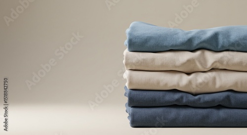 Stack of Folded Neutral-Colored Sweaters on Beige Background