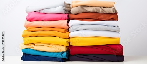 Stack of folded shirts on a table