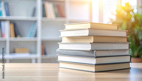 Stack of Hardcover Books on Wooden Desk with Soft Natural Light – Educational and Reading Background for Learning Concepts