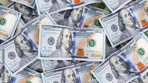 stack of one hundred dollars bills U.S., one hundred dollar banknotes stacks isolated on white background, 3d render