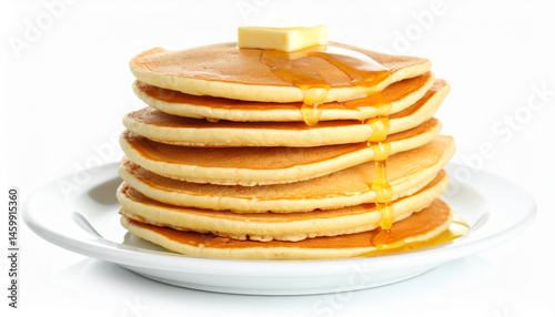 Stack of pancakes on white plate. Tasty food. Cooking and culinary concept. Isolated on white
