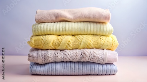 Stack of Pastel Knit Sweaters: Soft, Cozy, and Stylish Winter Fashion Apparel