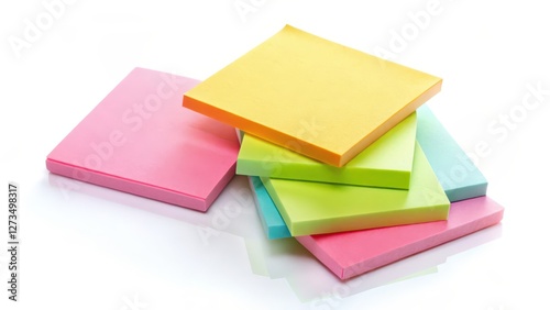Stack of Pastel Sticky Notes on White Background