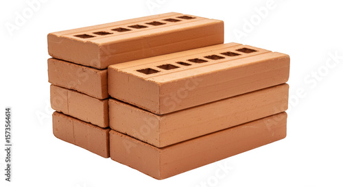 Stack of Red Bricks Building Materials Isolated Background