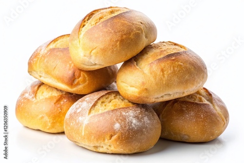 Stack of Rustic Ciabatta Bread Rolls Isolated on White Background - Perfect for Bakery Menu