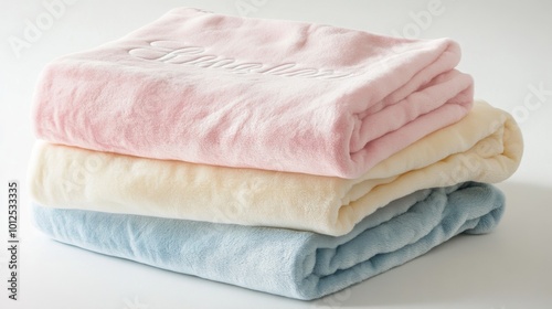 Stack of Soft Pink, Beige, and Blue Blankets