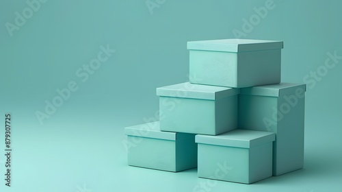 Stack of teal boxes against a teal background, showcasing minimalist design and storage theme in a modern aesthetic.