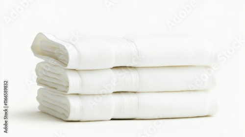 Stack of Three Soft White Bath Towels Folded Neatly Spa Like Luxury Texture