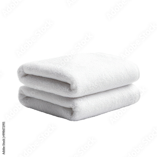 Stack of Two Clean White Towels Isolated on Transparent Background for Bathroom and Spa Use