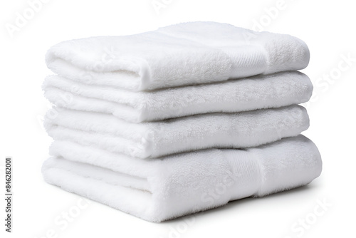 Stack of white towels isolated on a white background, soft focus.
