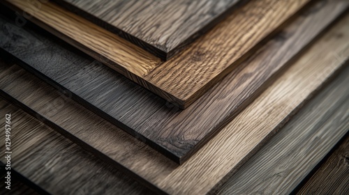 Stack of wooden laminate panels with natural wood grain texture