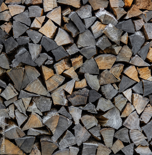 Stack pile of firewood oak wooden logs