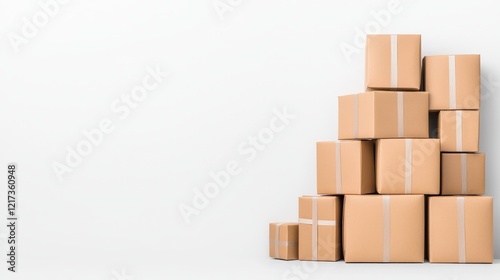 Stacked cardboard boxes on white background for fast delivery and shipping logistics services