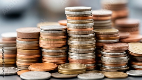 Stacked Coins of Various Denominations Reflecting Financial Concepts and Investment Opportunities