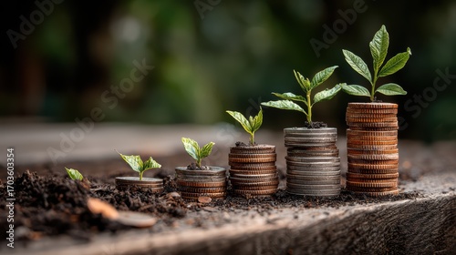 Stacked Coins Transforming into Lush, Thriving Plants Empowering Financial Growth Investment Inspiration.