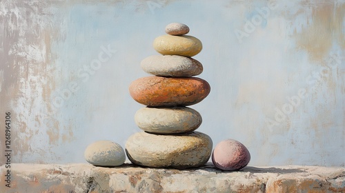 Stacked Colorful Stones on a Minimalist Background in Soft Tones