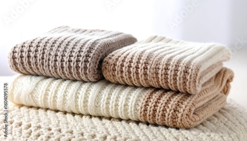 Stacked knitted garments in beige and cream