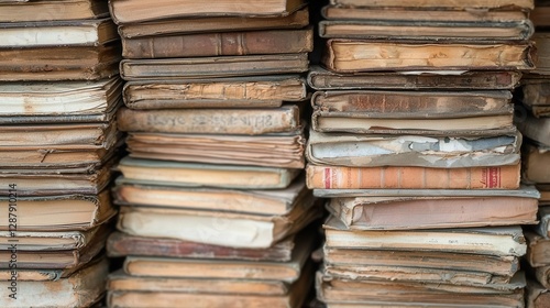 Stacked Old Books Covering Vintage Literature and Knowledge