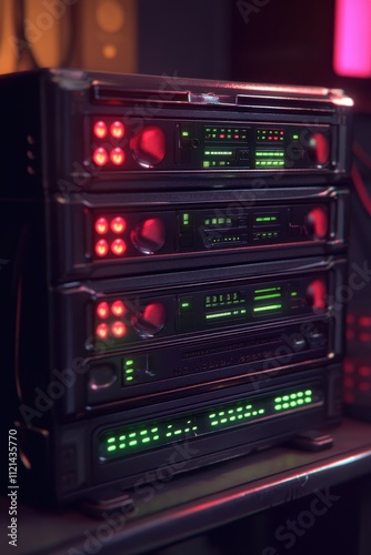 Stacked Retro Audio Equipment with Glowing Lights