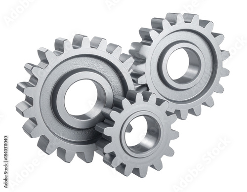 Stacked Silver Gear System Icon, Asymmetrical Angle, high-detail plastic render, minimal, isolated PNG