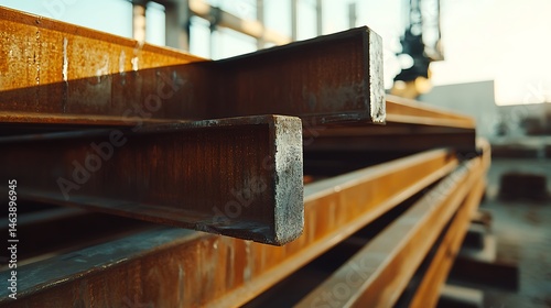 Stacked Steel Beams in an Industrial Setting