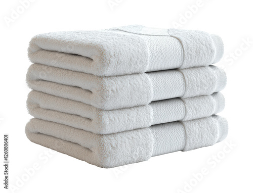 Stacked white towels in minimalist bathroom isolated on transparent background, png