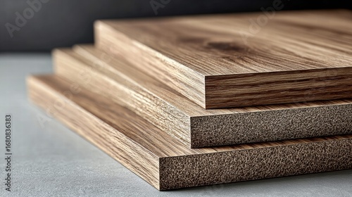 Stacked wooden panels showcasing intricate grain patterns and rich, natural textures for design and construction.