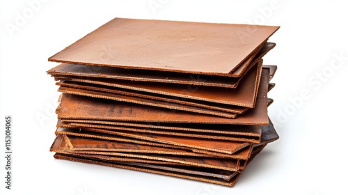 Stacked wooden plywood panels or boards in a pile on a plain background