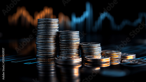 stacks of coins on financial chart