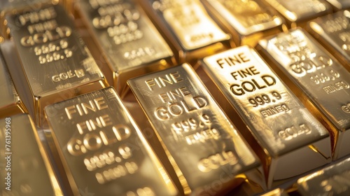 Stacks of many shiny gold bars.
