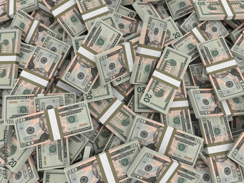 Stacks of money. Twenty dollars.
