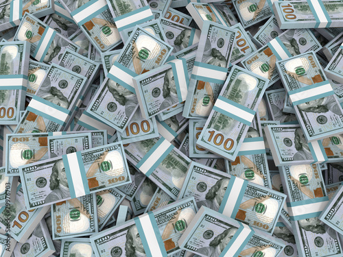Stacks of money. New one hundred dollars.