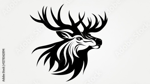 Stag head silhouette, black and white tribal style animal illustration, vector graphic stag.