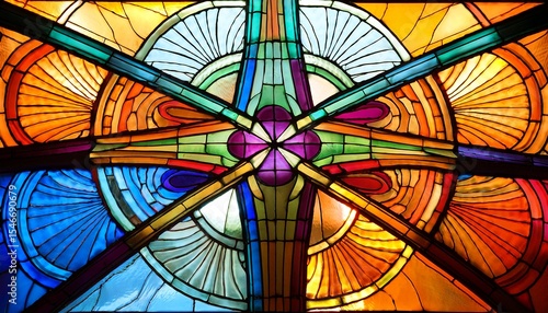 stained glass cross in bright vivid colors