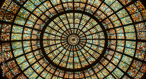 Stained Glass Dome Ceiling With Geometric Color Gradients Pattern