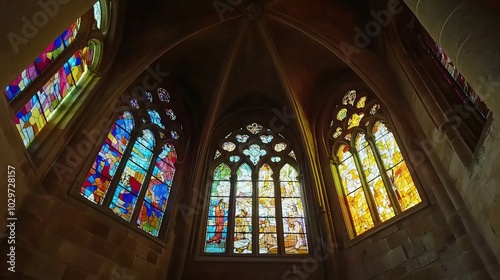 Stained Glass Windows in a Cathedral